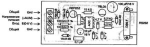 Все устройство смонтировано на печатной плате (рис. 4.3), размеры которой невелики, но которая все же не претендует на размещение в корпусе разъема DB9, подключаемого к ПК.
