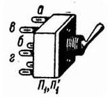 Тахометром для измерения числа оборотов в этих пределах может служить двухдиапазонный генератор, собранный по схеме мультивибратора, показанной на рис. 8, а. Он собран на двух транзисторах Т1 и Т2 с усилителем мощности на транзисторе Т3. Переключатель П1 предназначен для перехода с диапазона 50—200 гц на диапазон 100–400 гц. Он собирается на тумблере 2×2, где выводы — точки б и г — являются средними контактами, а точки а и в — боковыми.